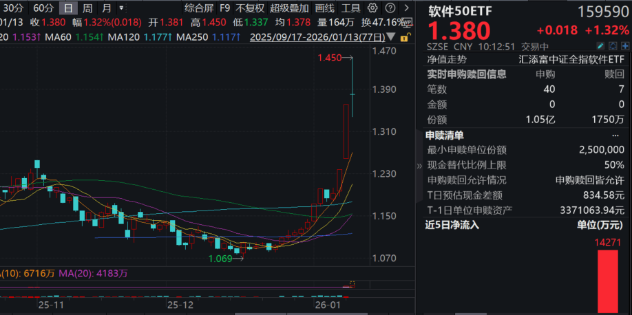 朴直证券暗示,AI下逛使用场景正加快进入贸易化验证阶段,软件50ETF(159590)紧跟中证全指软件指数,
