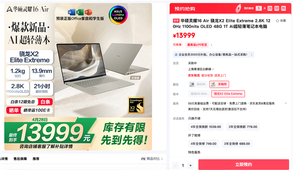 华硕灵耀16 Air 骁龙版搭载专为超高端Windows 11 PC打制的骁龙X2 Elite Extreme处置器,用陶瓷从头付与金属魂灵,