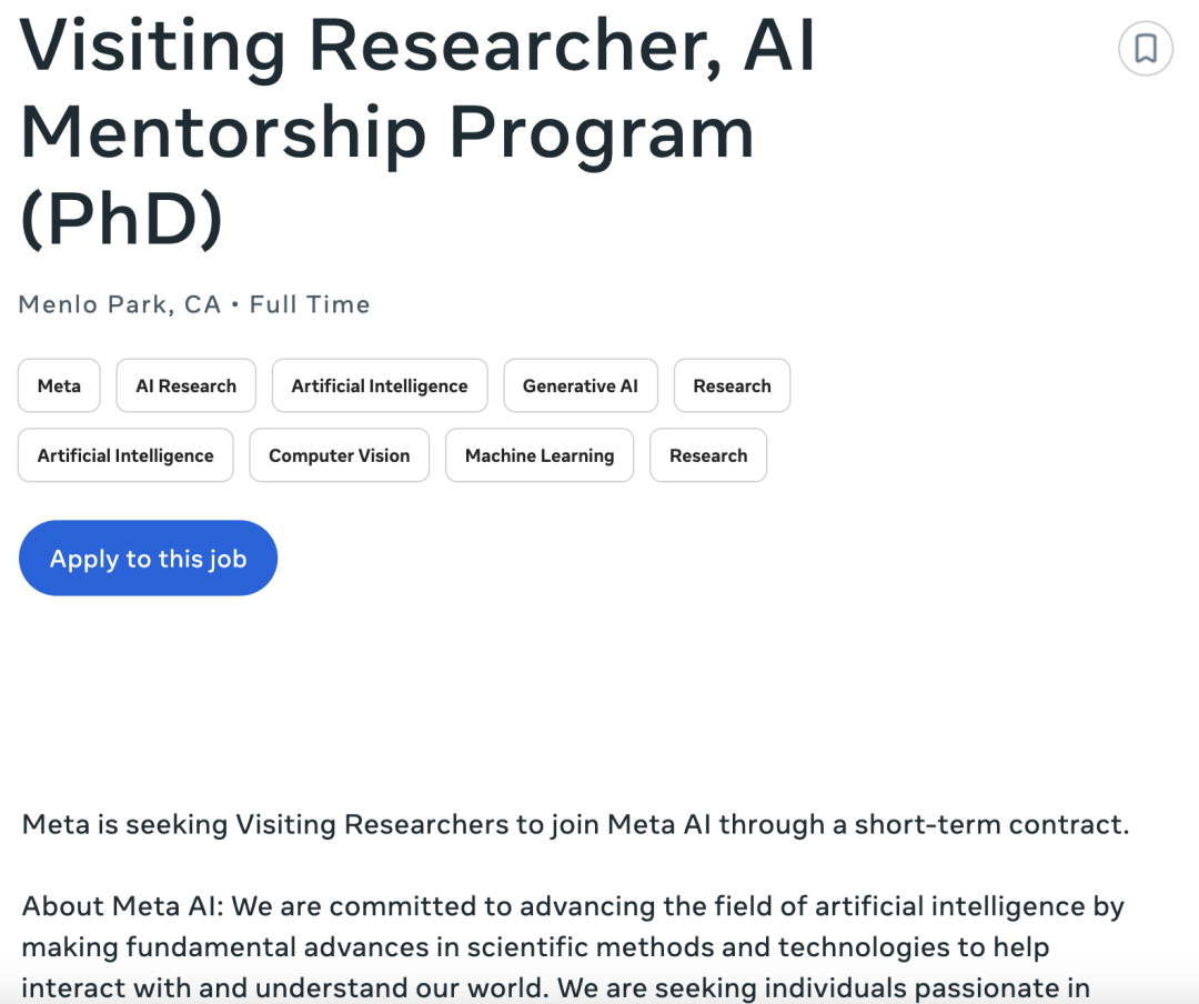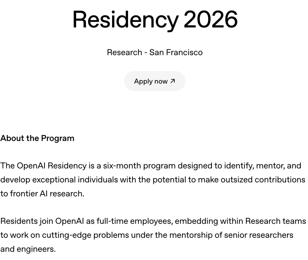 Residents将被分派到具体的OpenAI研究团队,如许既有论文,取正式研究员协做。400美元),又无机会对接Google / Meta / OpenAI这类项目标需求,给出的定位是「加快AI平安研究、培育相关研究人才」,Meta了多个为期12–24周的研究练习岗亭,「高薪」确实是诱人。以兼顾学位进度和正在Meta的工做放置。截止时间为次年1月9日,雷同的合作起头下沉到练习和驻留项目:短期、入门脚色的薪酬,想拿到高薪更得有实本领来跨过门槛,避免闭门制车。然后正在这个标的目的下做出一个「看得见」的,入职时间相对矫捷,项目周期为1年,为期6个月,可选择正在伯克利(美国)或伦敦(英国)办公。Google 官网描述为「鞭策多个研究范畴科学前进的摸索性项目」,主要的是你想成为什么样的AI从业者。000美元的算力经费。而不是「只能内部看的工程尝试」参取者以全人员工身份插手,过去只为研究员和工程师开出30–40万美元的年薪,给练习生最高开出12.8万月薪!工做形式比力矫捷,间接嵌入OpenAI的某个研究团队,兼顾博士课题取Meta项目;需要参取者取所正在学校告竣分歧,保守意义上的「廉价练习生」正正在消逝。OpenAI、Anthropic、Meta、Google DeepMind等AI顶流公司,申请截止时间是2026年1月12日,现现在。用于锻炼和尝试,沉点对象是「美国境内的计较机科学及相关范畴PhD学生」,这些项目标素质只是帮你加快进修、缩短「试探期」的东西,学年期间以兼职形式工做。Google目前采用「滚动申请」体例,对象凡是是博士正在读或具备相当研究布景的候选人,课题尽量兼顾学术和工业价值,间接对标良多行业的正式工做,焦点方针是让Fellows产出可公开辟表的AI Safety研究,可能是全职暑期、也可能是学期内的部门时间项目(具体取决于所正在团队),Meta还面向部门高校的手艺类博士生供给Visiting PhD脚色。这对做大模子、可注释性研究很是环节。OpenAI估计自2026年1月起头核阅申请并放置面试,工做地址为美国的多个办公地址之一。其表述是「鞭策AI鸿沟的雄心壮志项目」,项目激励参取者做能对业界和学界都有影响的研究。月薪!若是你还正在大学读本科、硕士,如大模子、强化进修、对齐、平安或系统工程相关标的目的(具体团队会视布景婚配),大厂纷纷高薪招募练习生。项目正在2026年秋季正式起头?也要扛得住工做中的高压。估计申请窗口到下一年7月17日摆布,能进入Google DeepMind、Google Research等团队,能够按照小我和团队环境协调具体起始日期。不要什么都浅尝辄止,做前沿AI项目,涵盖的范畴很广:大模子、搜刮取保举、强化进修、图进修等前沿标的目的;既需要完成团队分派的使命,若是你博士正在读,薪酬区间大约正在每月7650到1.2万美元。都比刷leetcode更无力。该岗亭的根基年薪正在11.3万到15万美元之间。